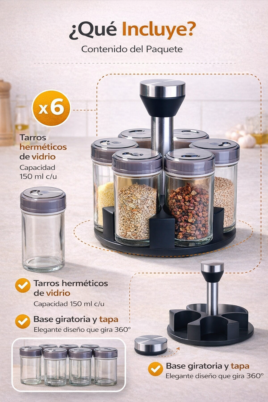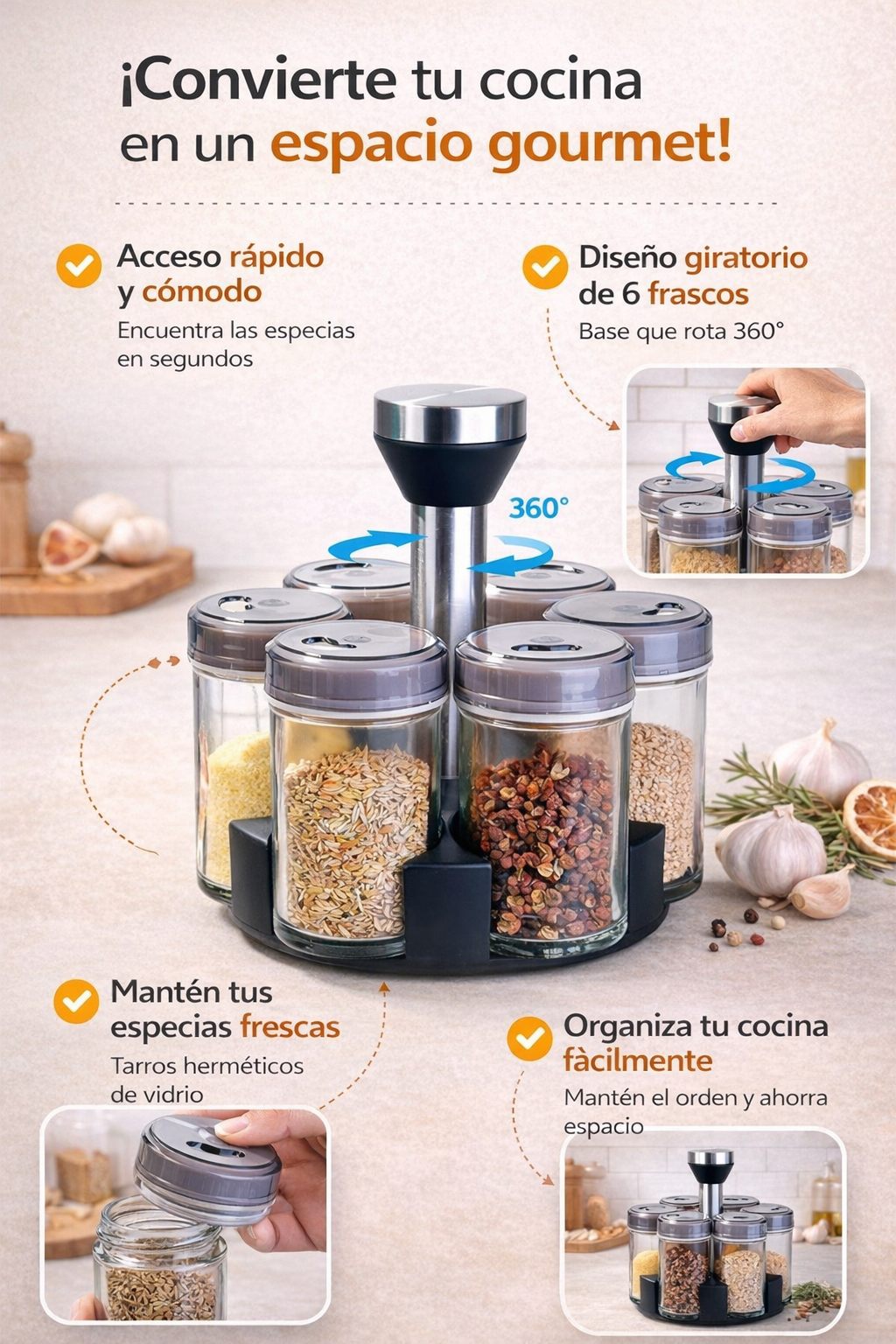 Carrusel de especias giratorio 6 frascos.